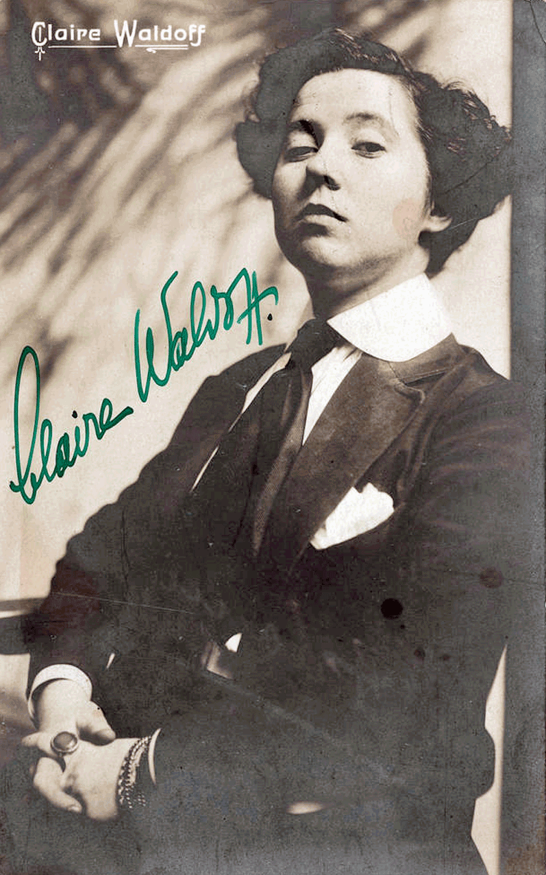 „Eine Sängerin, blutjung, temperamentvoll, wild, berlinisch, proletarisch, fast mehr Mann als Frau – eine hinreißende, das Publikum entweder abstoßende oder einfach umwerfende Erscheinung…“, so beschrieb der Kabarettist Willi Schaeffers seine Kollegin Claire Waldoff, die 1908 am Kabarett „Chat Noir“ engagiert war. Nur wenige Monate zuvor war sie auf der Bühne des „Roland von Berlin“ über Nacht zum „Stern von Berlin“ geworden. Großen Anteil an diesem gelungenen Debut der 23-jährigen Autodidaktin hatte ihr ebenso junger Kollege, der Komponist und Pianist Walter Kollo, der ihre ersten Auftrittslieder schrieb.Claire Waldoffs Markenzeichen waren ihre brandroten Locken und eine schlichte Bühnenkleidung – Rock, Hemdbluse und Schlips. Sie besaß einen unvergleichlichen Vortragsstil, der so auf einer Kabarettbühne noch nie zu erleben gewesen war. Statt ausladender theatralischer Gesten unterstrich sie ihre Darbietungen mit einfachster, aber äußerst wirkungsvoller Mimik. Ihre Lieder erzählten vom Alltag der kleinen Leute, den sie auf den Straßen, in den Laubenkolonien und in den Kneipen Berlins studierte.