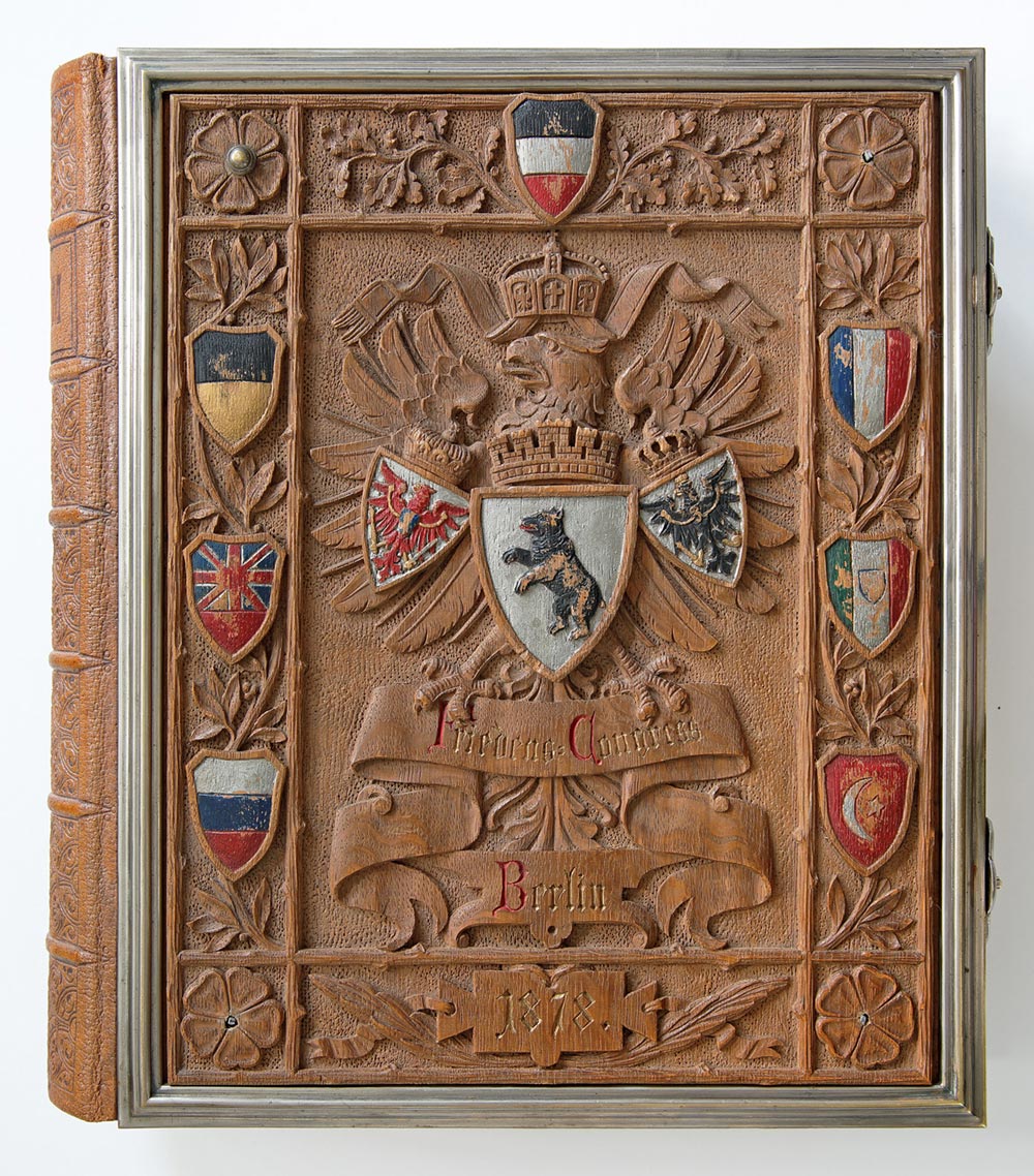 Das Album zum „Berliner Friedens-Congress 1878“, so die Aufschrift, war ein Geschenk der Kongressteilnehmer an die Stadt Berlin. Darin befinden sich Portraits der Bevollmächtigten mit Originalautogrammen sowie Darstellungen der Verhandlungen. Beigefügt ist auch ein Brief Otto von Bismarcks. Das Album erinnert daran, dass internationale Konflikte durch Verhandeln anstatt durch Krieg zu lösen sind.