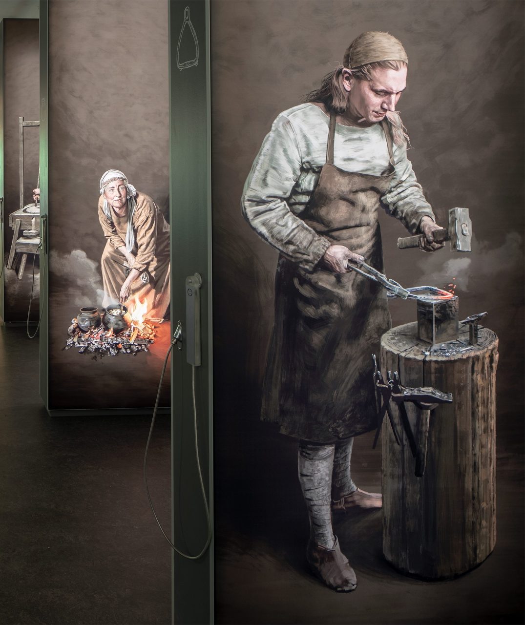 Ein Schmied und eine alte Frau sind zwei der Menschen, denen man an Hörstationen im Freilichtmuseum begegnen kann.
