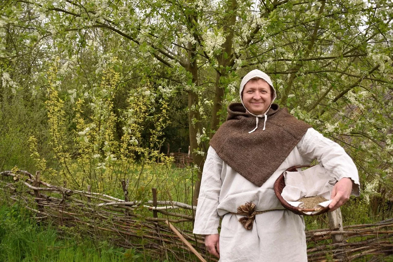Der Frühling will sich im Bezirk Steglitz-Zehlendorf noch nicht so richtig blicken lassen, doch Claus-Christoph Arbeiter ist vorbereitet. Flink schnürt er seine Haube unter dem Kinn zusammen. Der fest angestellte Landschaftspfleger, zugleich Mitglied im Fördererkreis Museumsdorf Düppel e.V., hat sich in mittelalterliche Schale geworfen. Vor allem der kapuzenähnliche Überwurf, der Gugel, schützt den Landschaftspfleger zuverlässig vor Wind und Wetter.