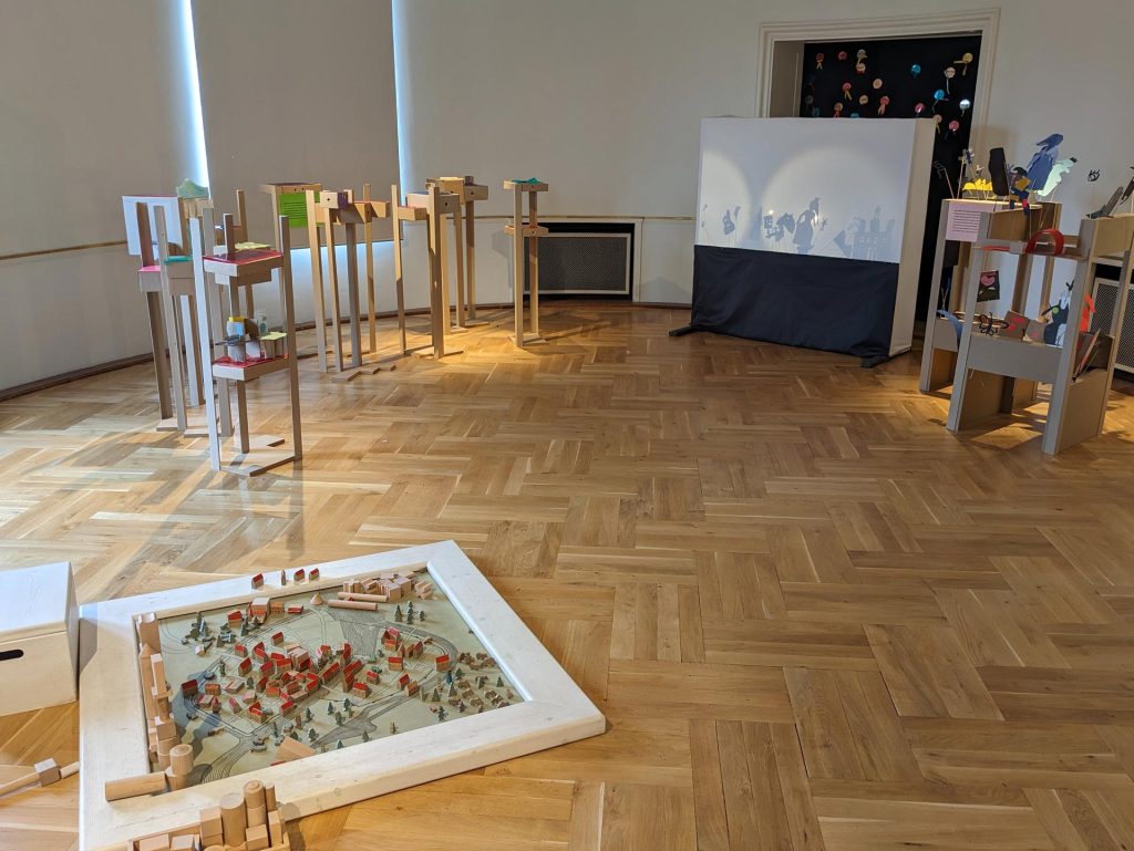 Die Ergebnisse ihrer Projektarbeit sind nun im 3. Obergeschoss des Museums Ephraim-Palais zu sehen. Hier gibt es Luftballon-betriebene Autos, Miniatur-Räume im Schuhschachtel-Format mit selbst gestalteten Möbeln und fantasievolle Scherenschnitte für das Schattenspiel. Die Besucher:innen können das selbst gestaltete Spielzeug entdecken, es ausprobieren und so Teil der Kinderwelt werden. Ein Berliner Stadt-Grundriss mit hölzernen Häusern lädt zudem dazu ein, die mittelalterliche Stadt nach eigenen Vorstellungen spielerisch zu gestalten.