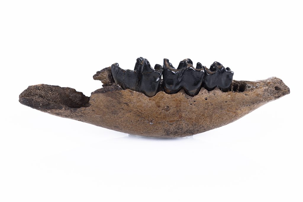 Dieses Unterkiefer-Fragment eines Jungtieres ist gleich in mehrfacher Hinsicht eine archäologische Besonderheit.