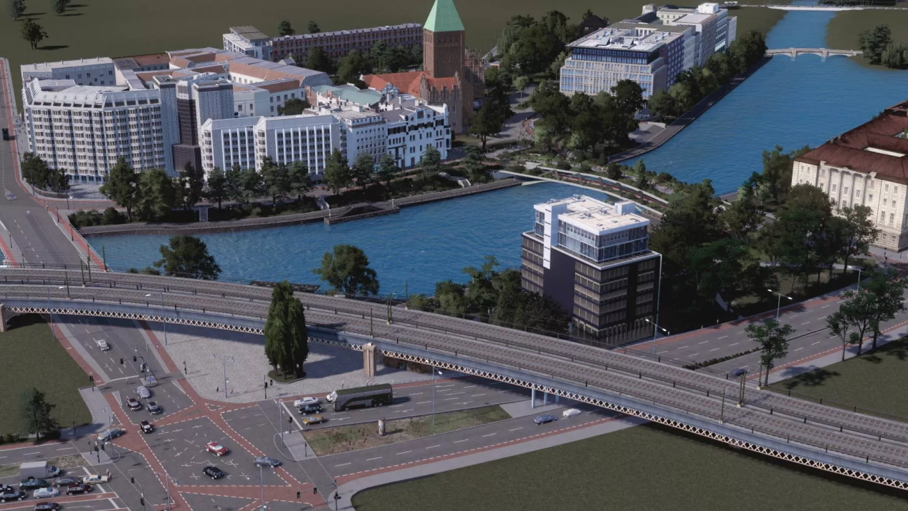 The international community of the computer game “Cities: Skylines” was asked to come up with a design for the area around the Märkisches Museum.