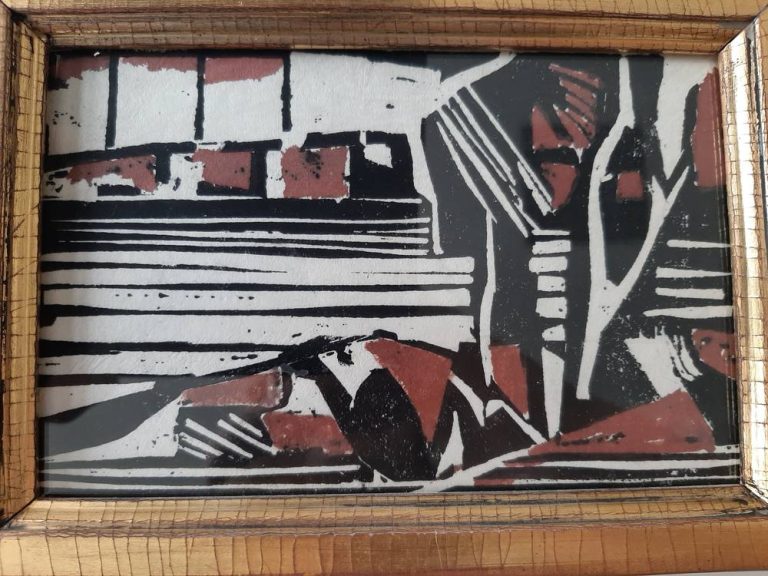 Carl-Heinz Kliemann: Briefkopfentwurf, 1974. Holzschnitt, Rahmenmaße: 12×17,3×1,5 cm, Invenaturnummer SM 2019-02704