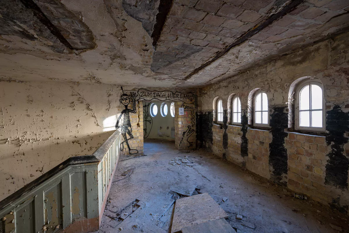Graffiti und fehlende Wände: Der über 30 Jahre andauernde Leerstand hat sich sichtlich bemerkbar gemacht.