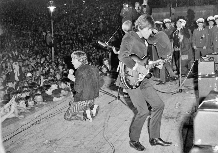 Rolling-Stones-Konzert in der (West-)Berliner Waldbühne, 1965; von links nach rechts: Mick Jagger, Keith Richards (verdeckt) und und Brian Jones