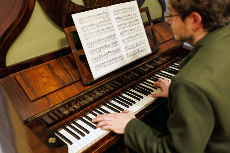 Auf dem historischen Lyra-Flügel von 1825 im Museum Knoblauchhaus spielt Adrian Schliebe weihnachtliche Klaviermusik aus dem 18. und 19. Jahrhundert, darunter Stücke von Johann Sebastian Bach, Wolfgang Amadeus Mozart und Ludwig van Beethoven. Zwischen den Musikstücken bringt Ihnen der Literaturwissenschaftler kurzweilig die Geschichte häuslicher Weihnachtsmusik nahe. Adrian Schliebe ist Pianist und Kurator der Ausstellung „Zerbrochne Harmonien. Kleist und die Musik“ im Kleist-Museum in Frankfurt (Oder).