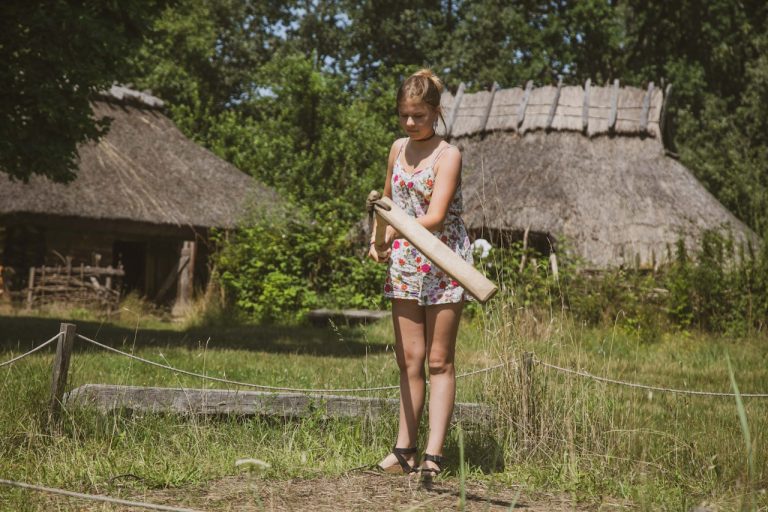 Einiges probieren die Kinder selbst aus: Sie pflügen, probieren den Dreschflegel aus oder mahlen Korn und lernen so den Alltag um 1200 ganz praktisch kennen. Nachdem sie das Geheimschloss des Backhauses geknackt haben, machen sie es sich im Bauernhaus gemütlich. Was wurde im Mittelalter gegessen und wie kühlten Menschen damals ihre Lebensmittel? Gemeinsam gehen die Kinder diesen und weiteren Fragen nach.